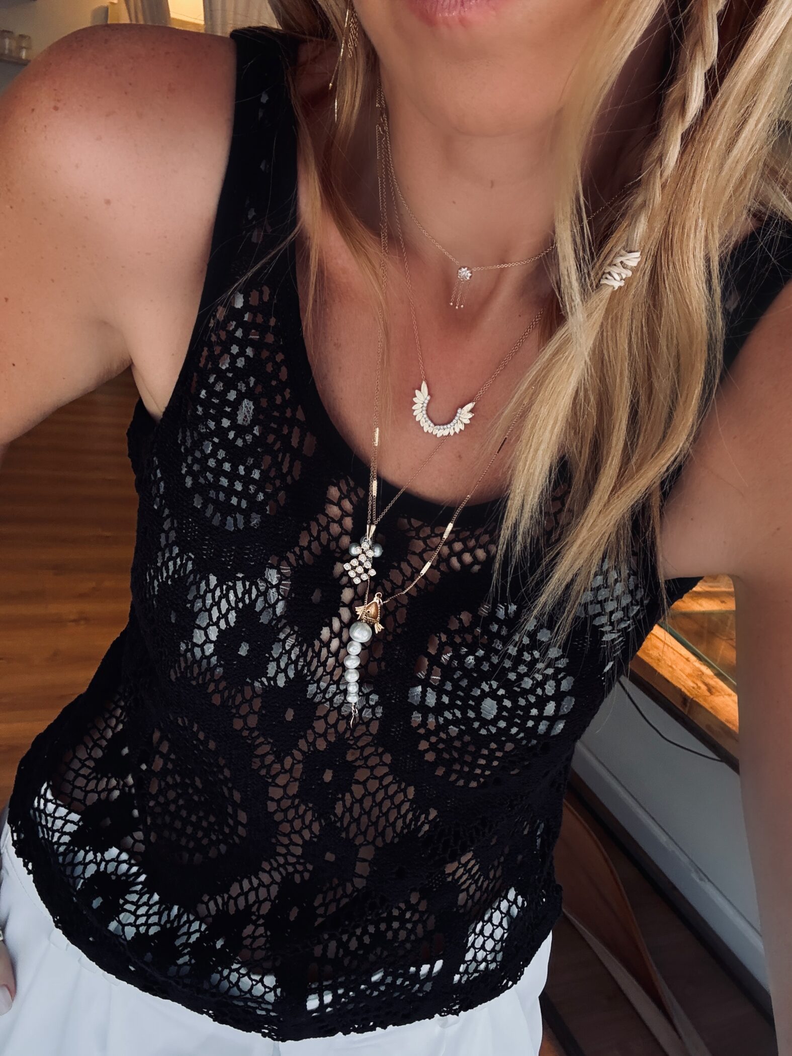 גופיית לייס שחורה