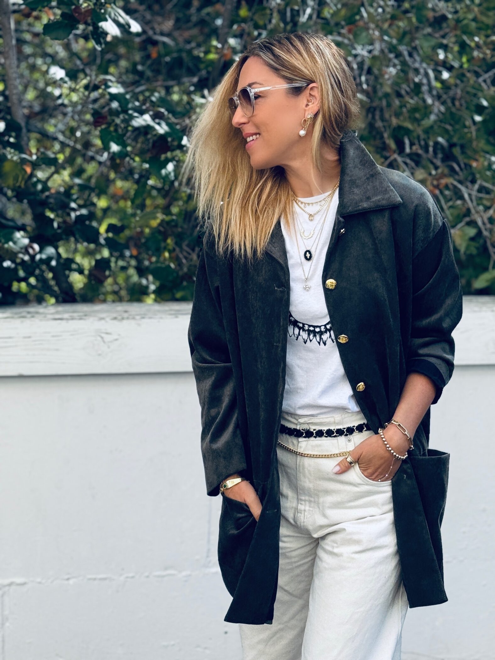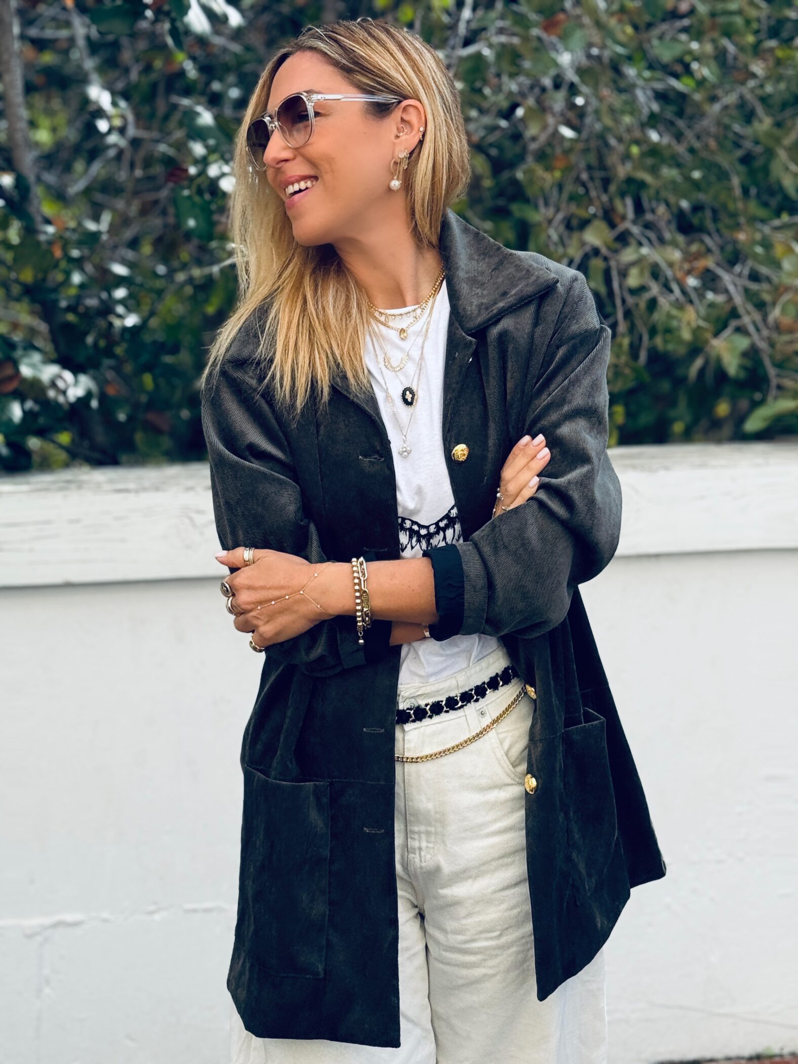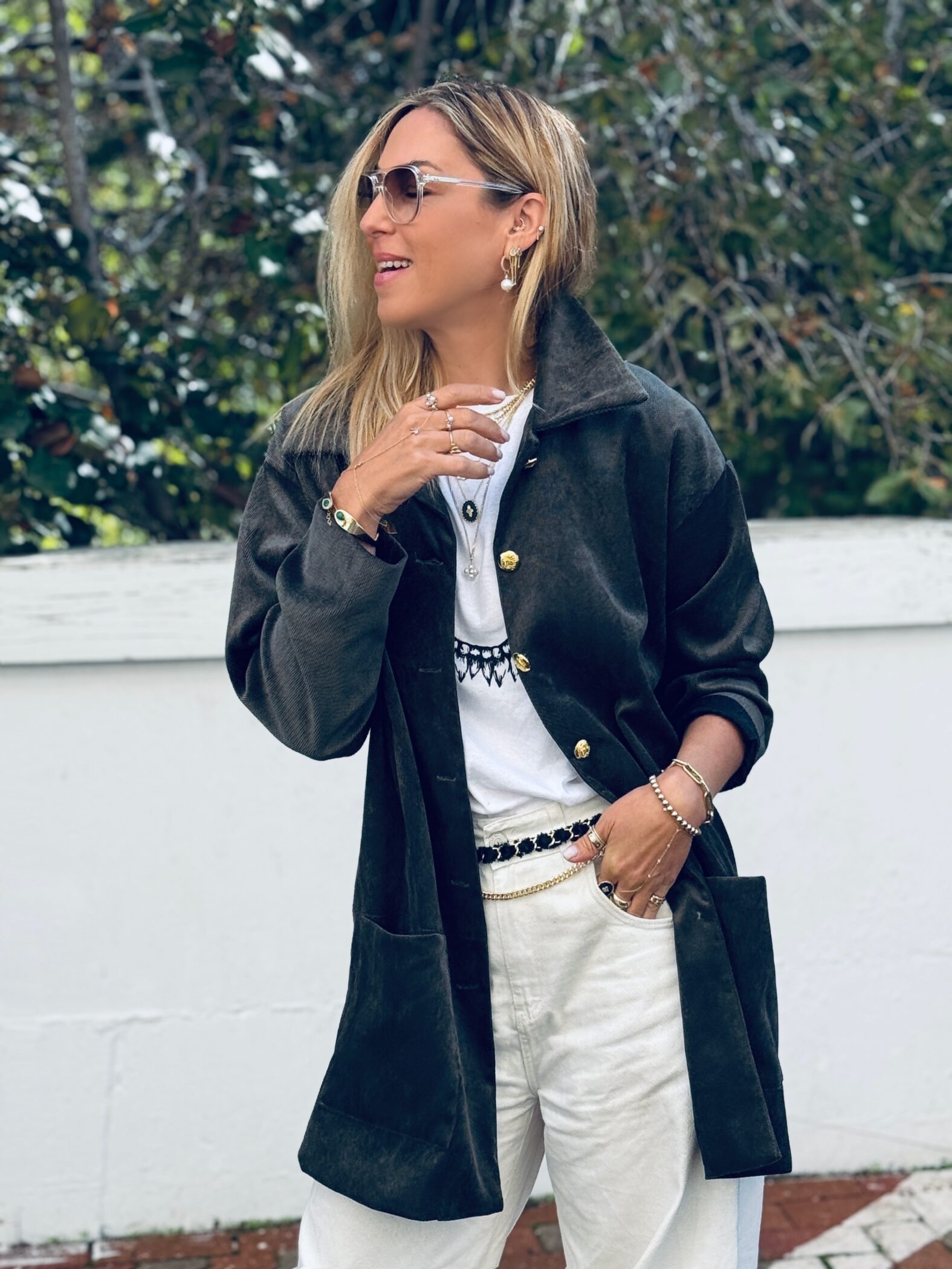 ג׳קט קורדרוי עם כפתורי זהב גדולים