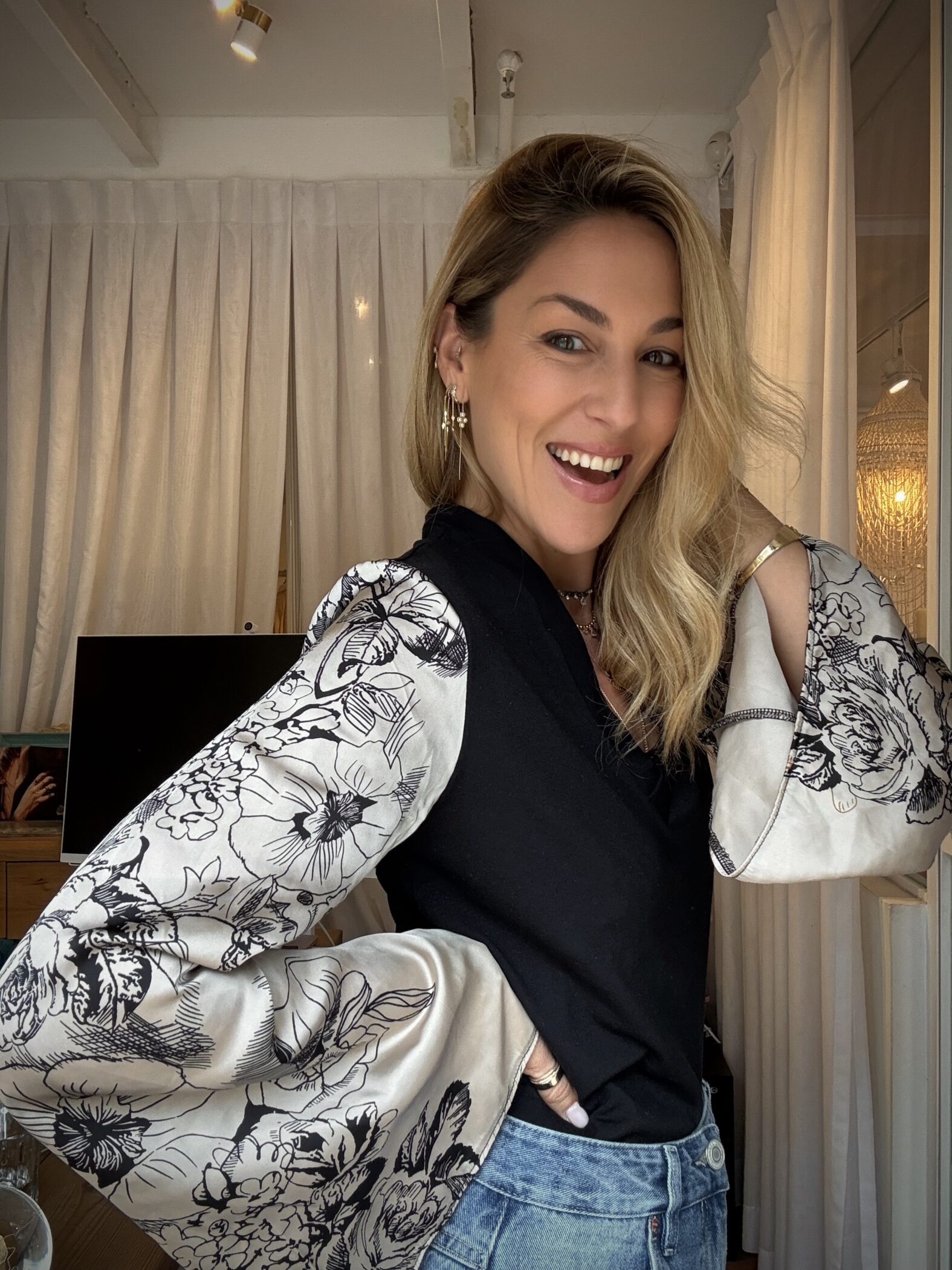 חולצה מבד כותנה לייקרה מבריקה (בד בגד ים)