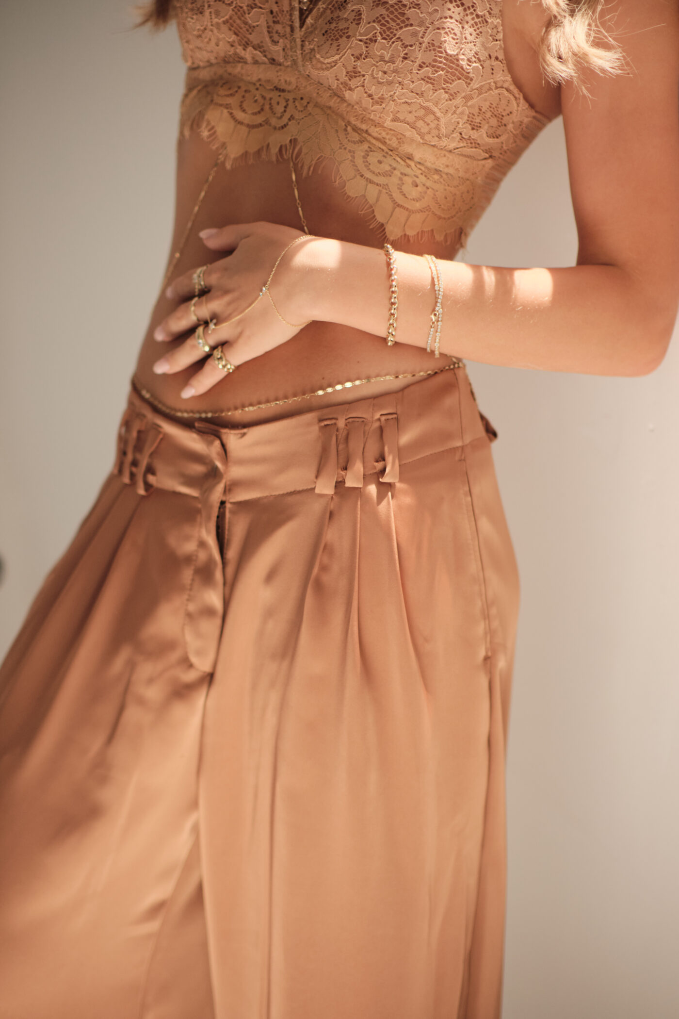מכנס סאטן מושלם עם נפילה עדינה ורכה על הגוף.