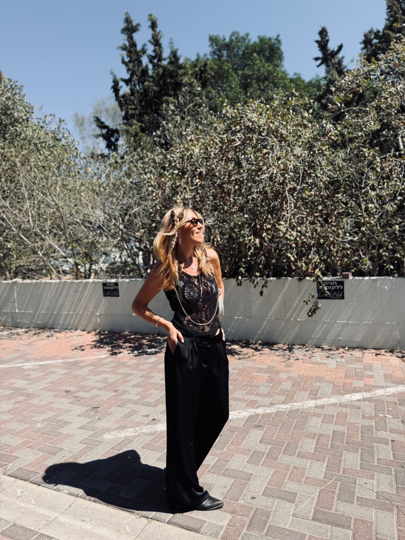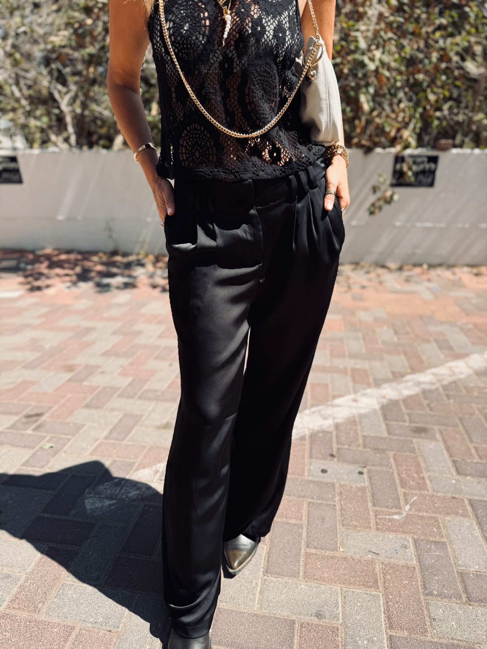 מכנס סאטן מושלם עם נפילה עדינה ורכה על הגוף.