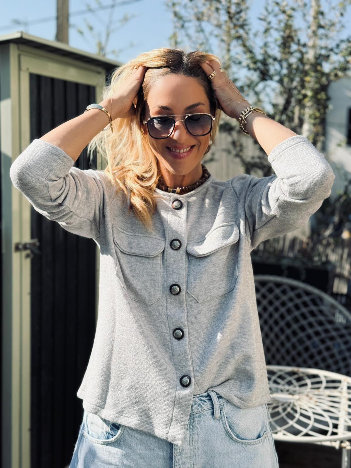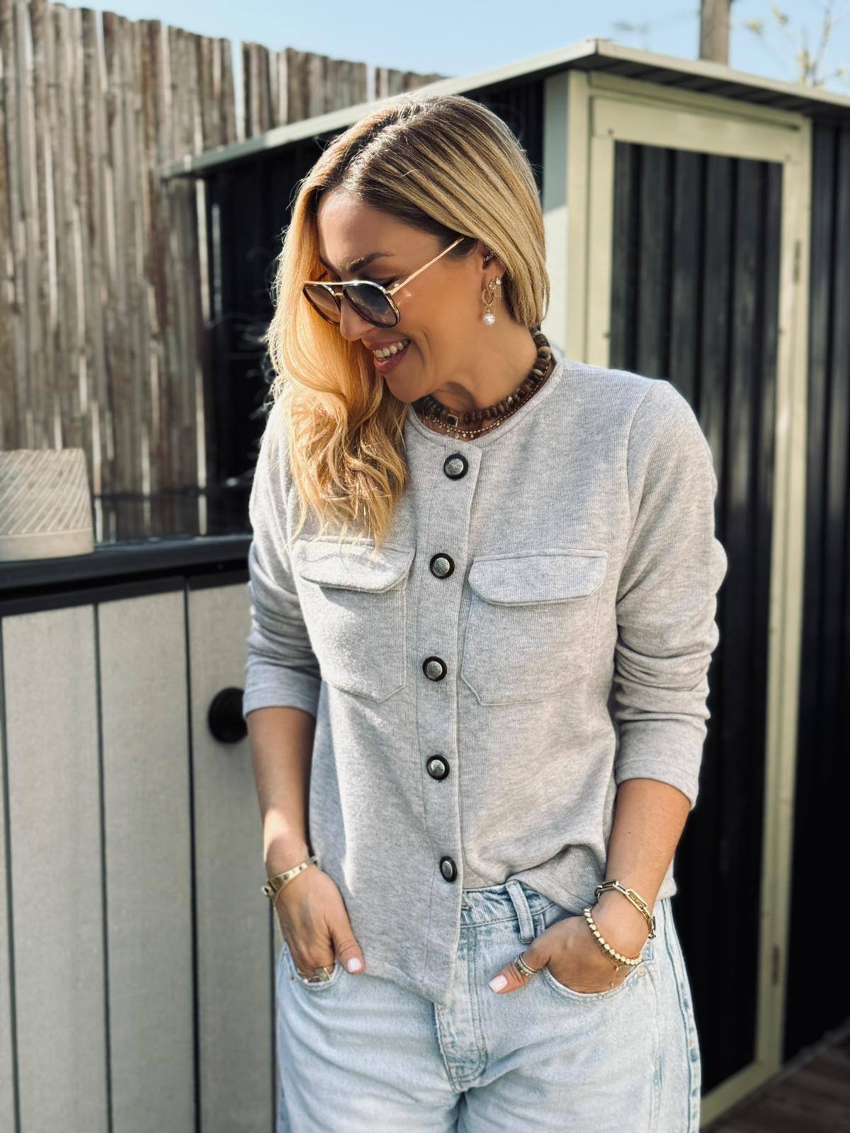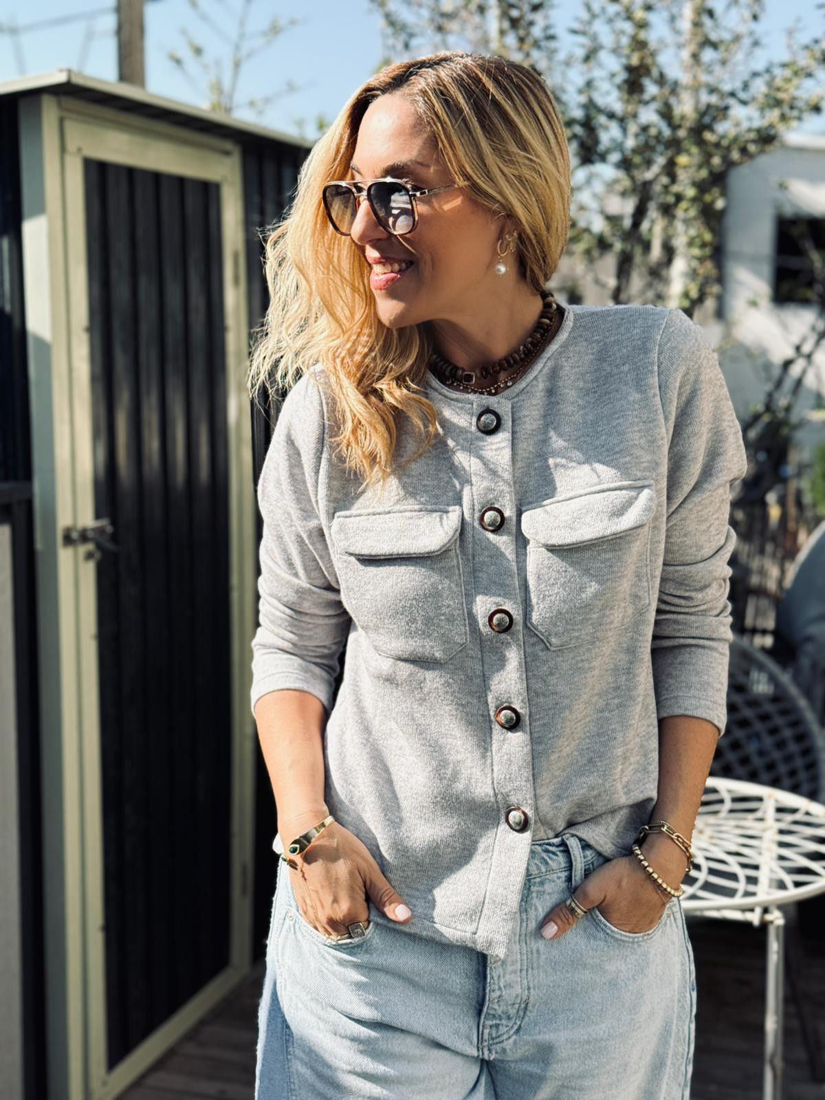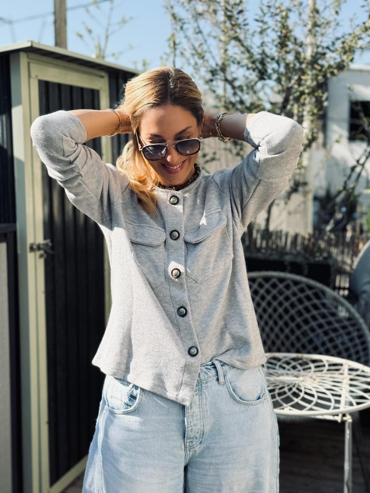 סריג קוני כפתורים אפור