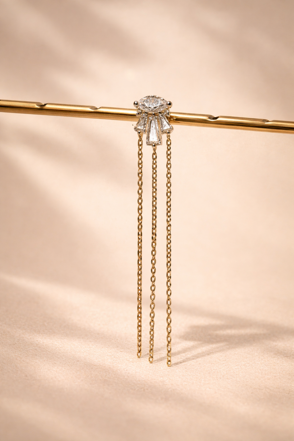עגיל זהב 14K משולב שרוכים משובץ זרקונים לבנים