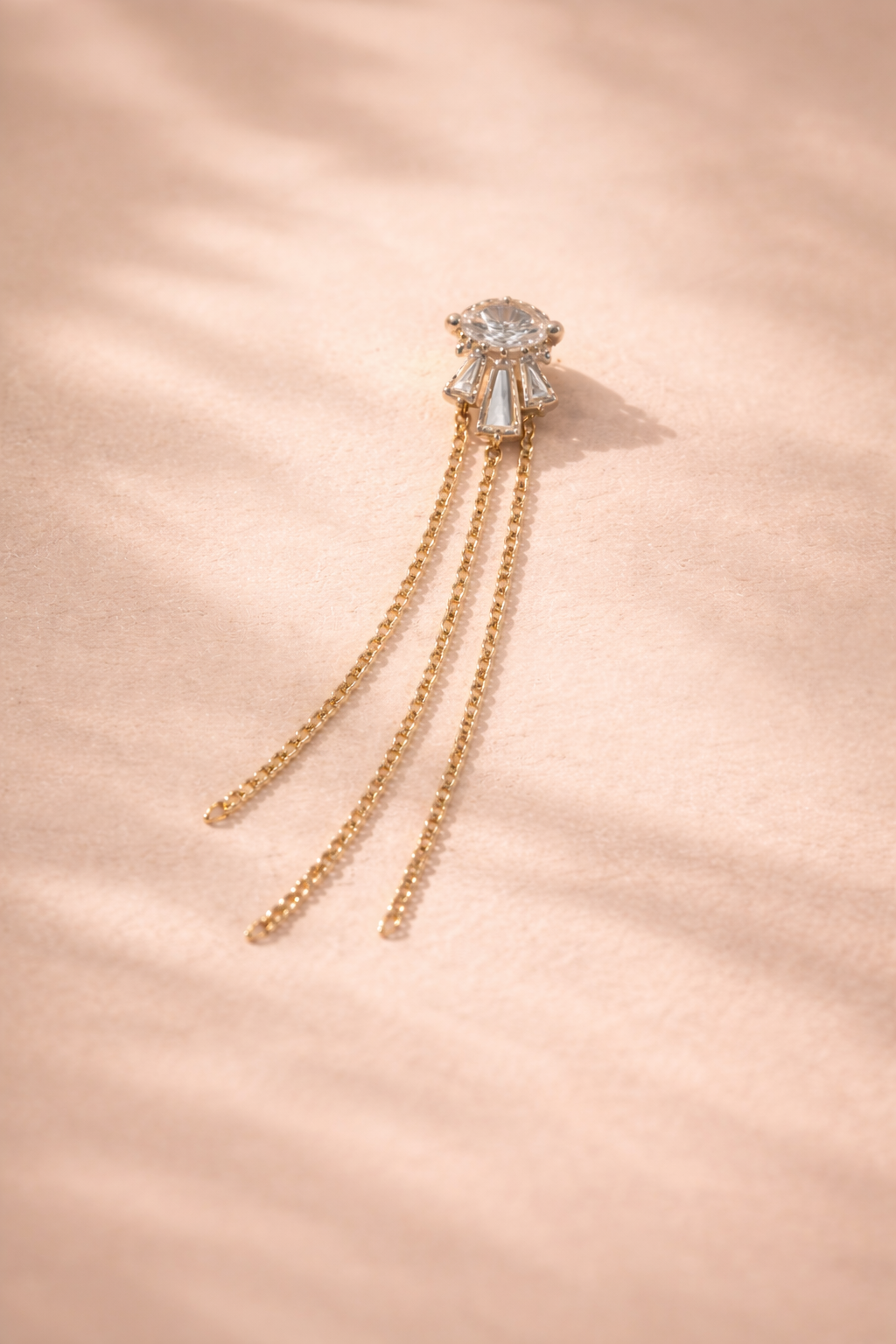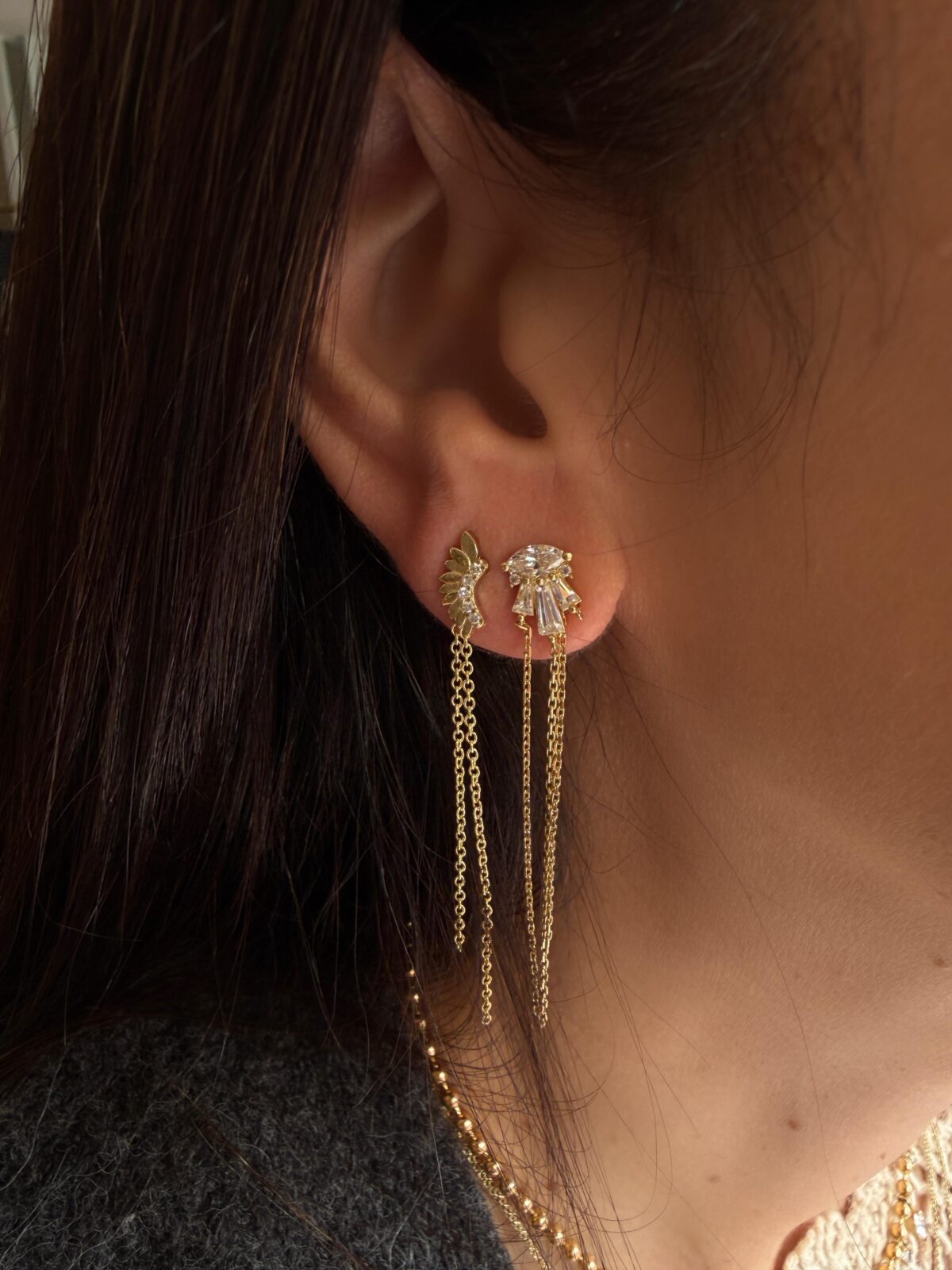 עגיל זהב 14K משולב שרוכים משובץ זרקונים לבנים