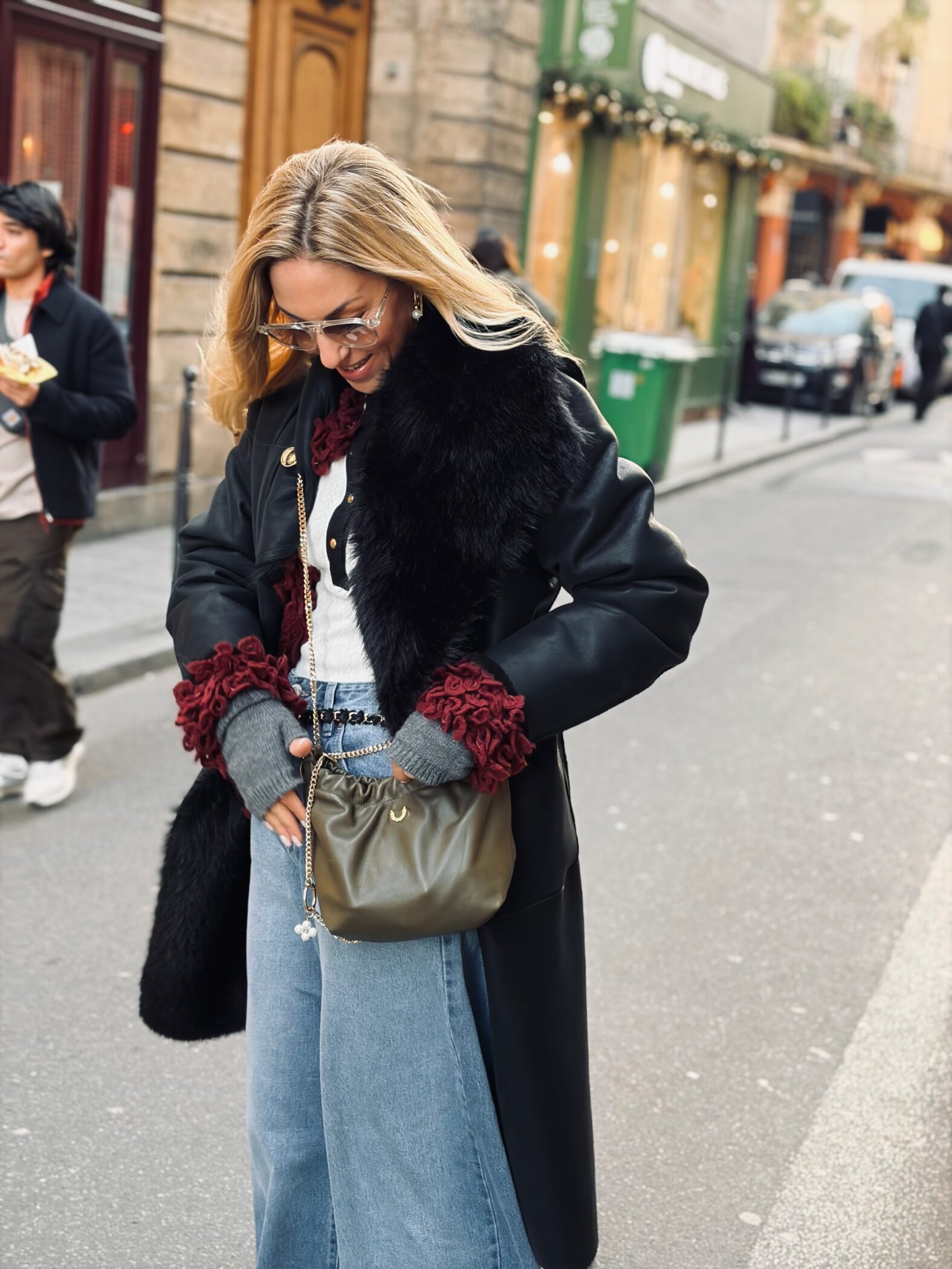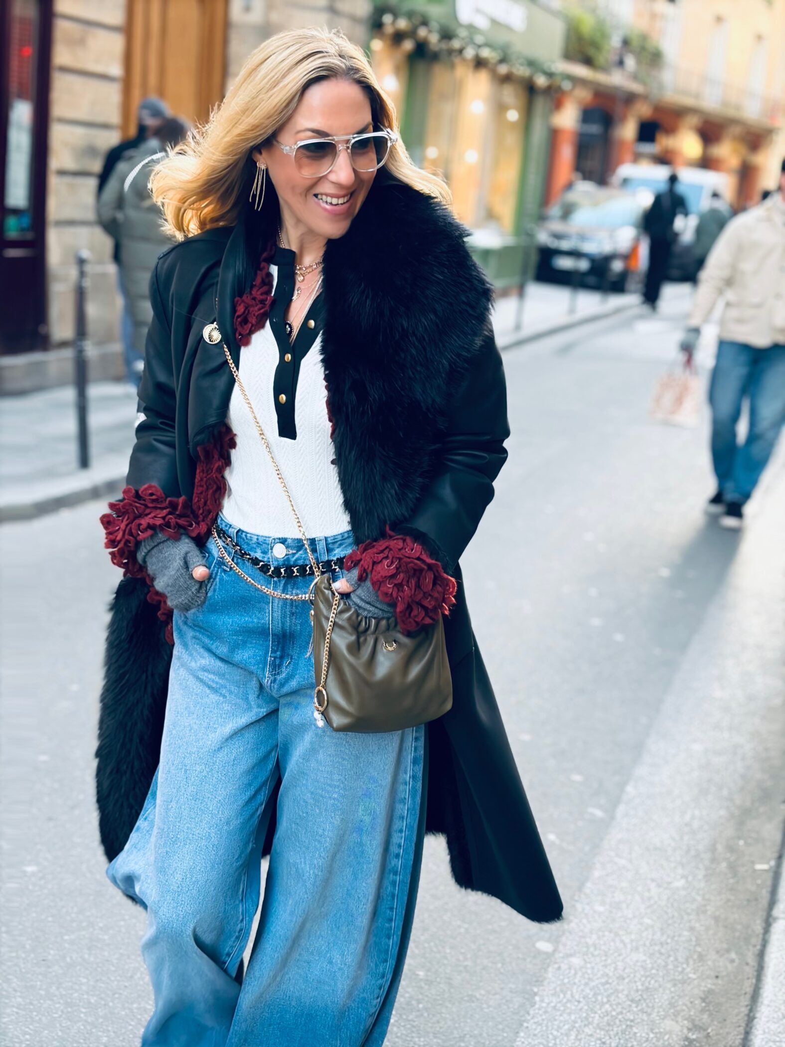 עור אמיתי בעבודת יד, כיס פנימי, רצועת שרשרת בצבע זהב