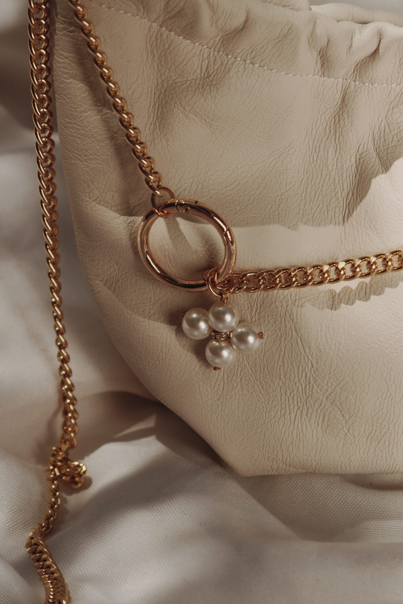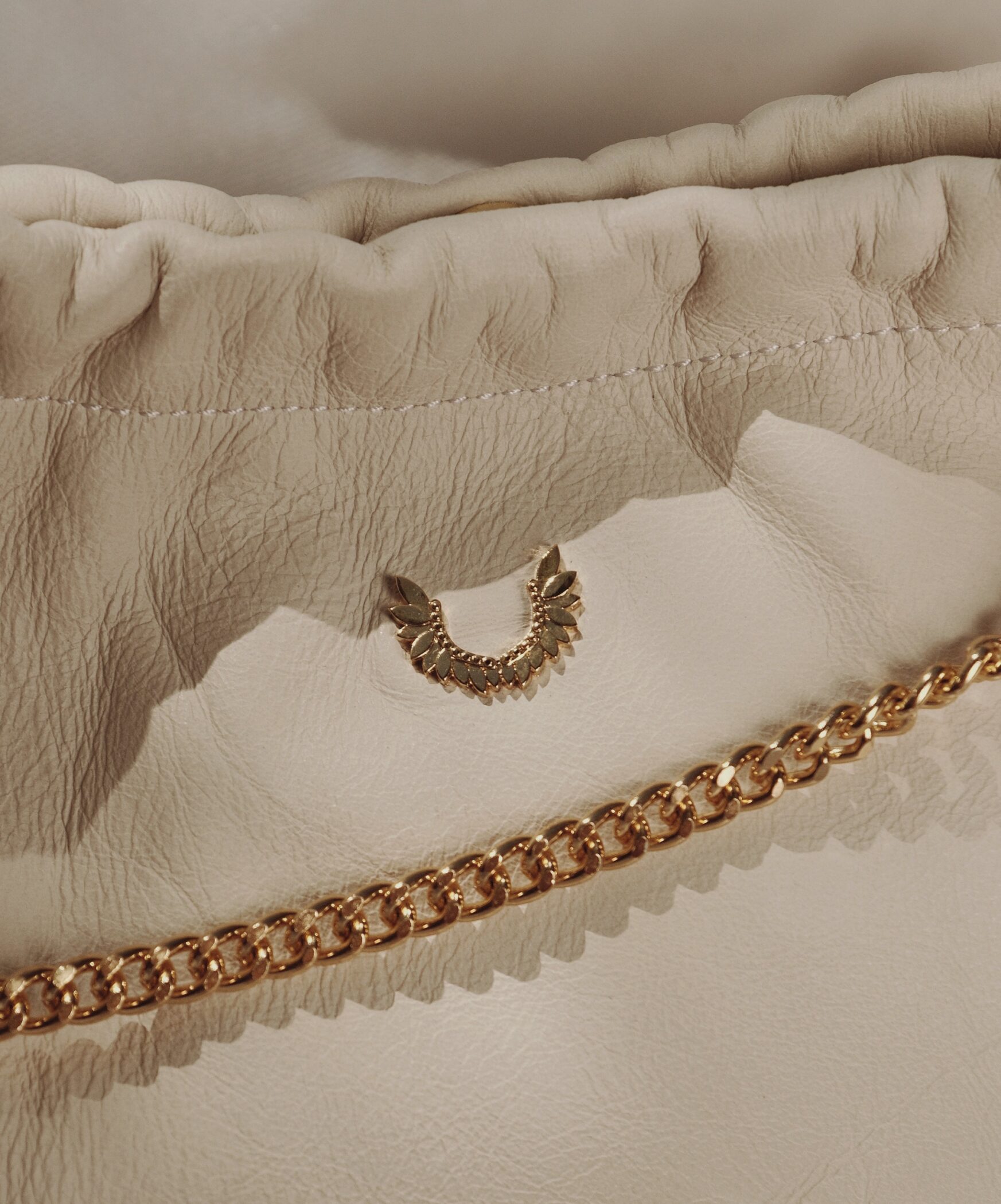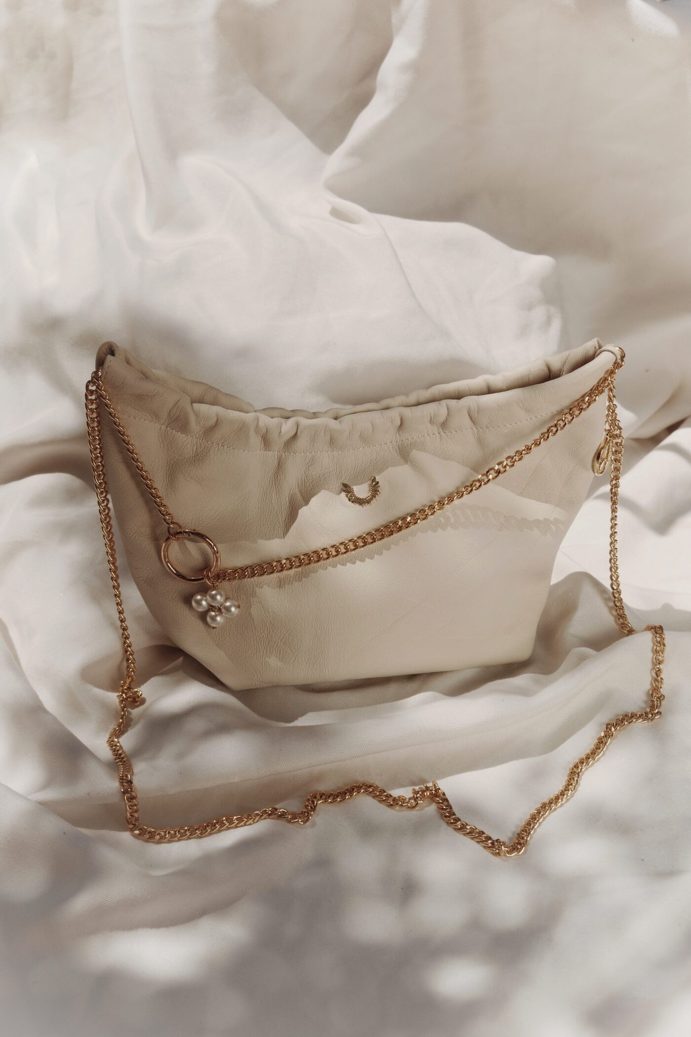 עור אמיתי בעבודת יד, כיס פנימי, רצועת שרשרת בצבע זהב