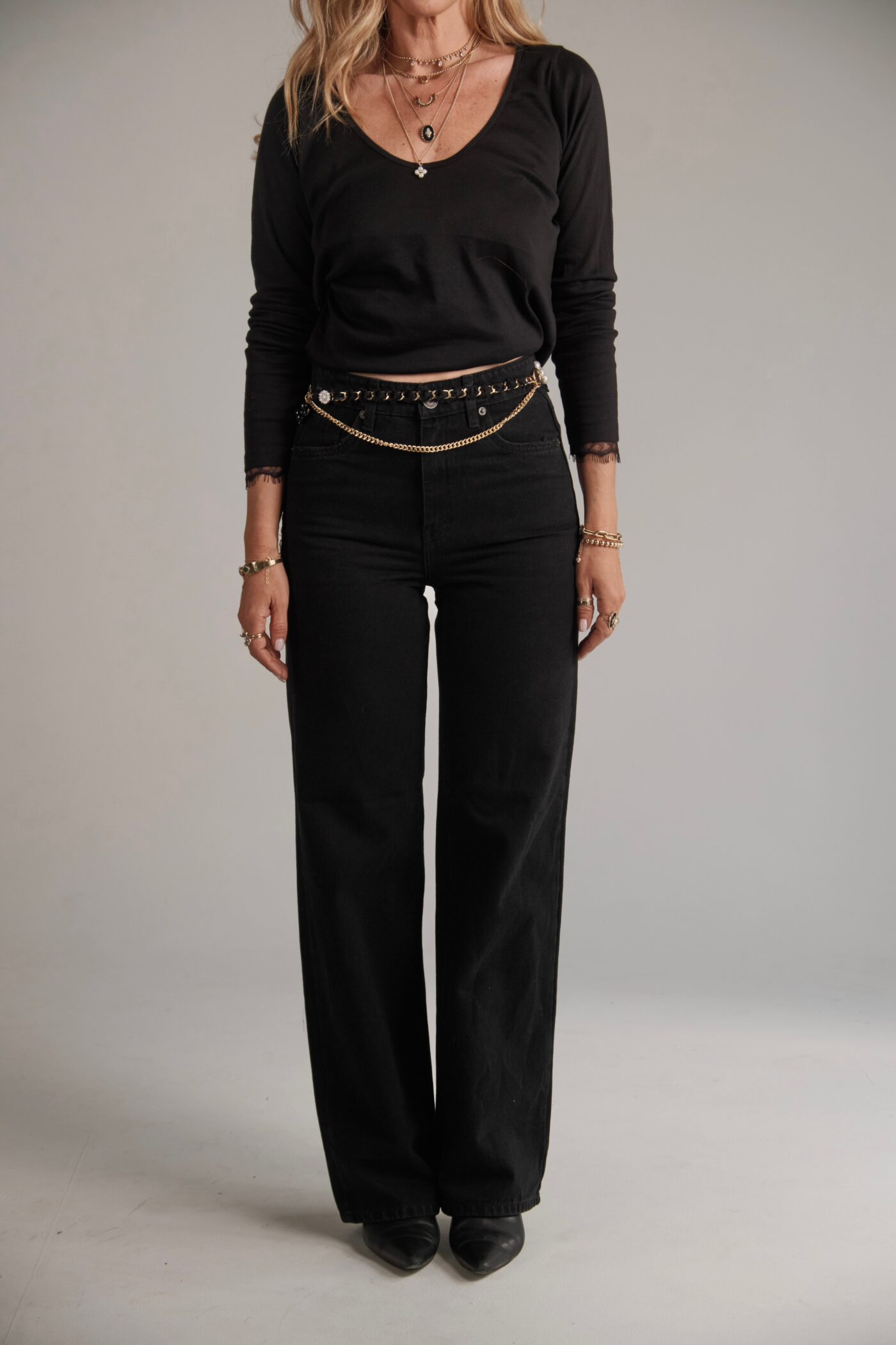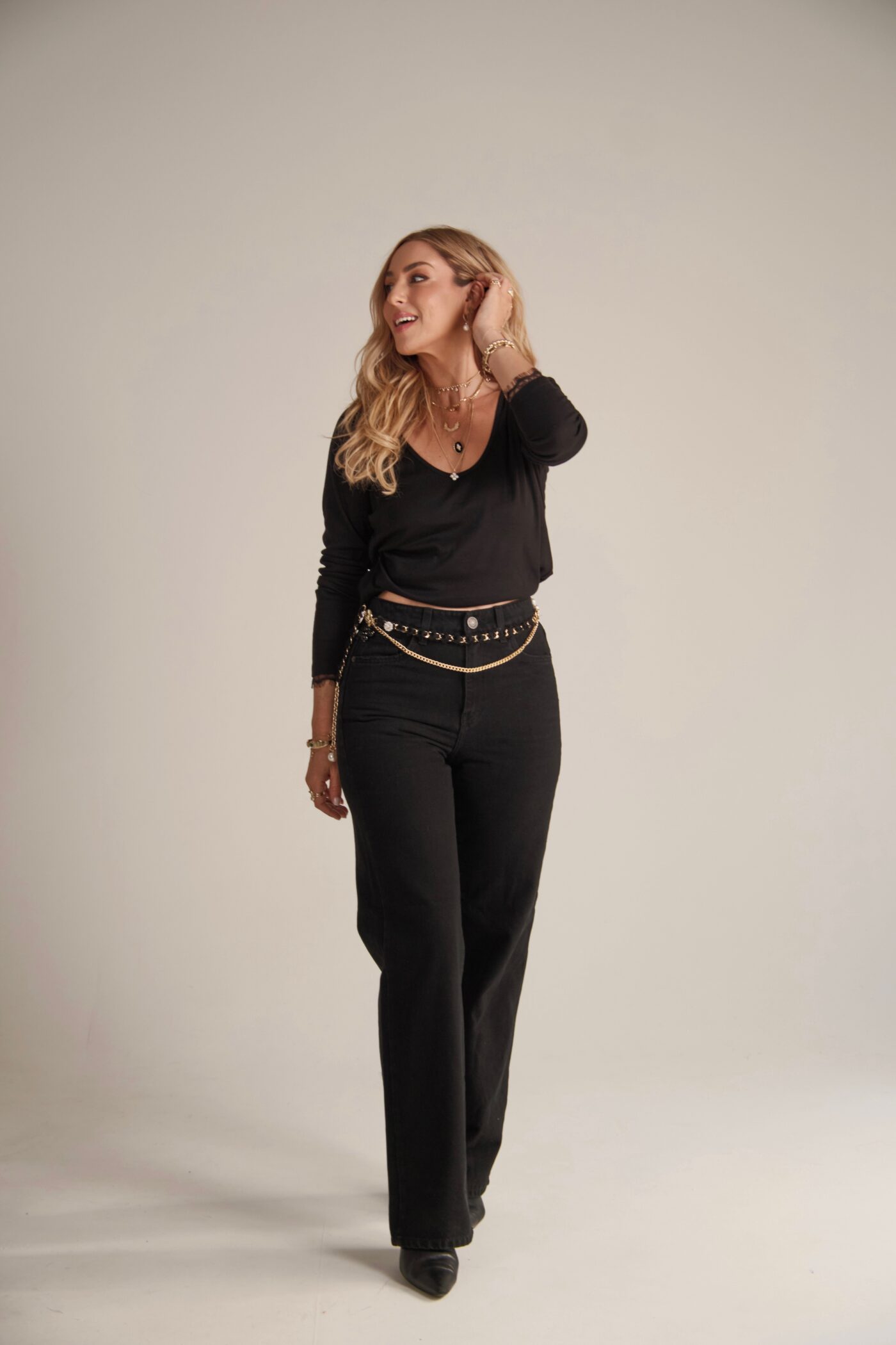 גוון שחור מלא- 100% כותנה, גיזרה ישרה