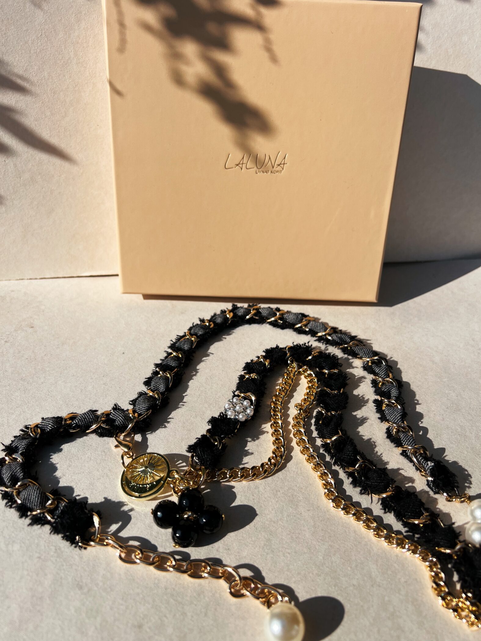 עשויה בעבודת יד ושזורה בפנינים ואוניקסים וסימני ההיכר של לה לונה