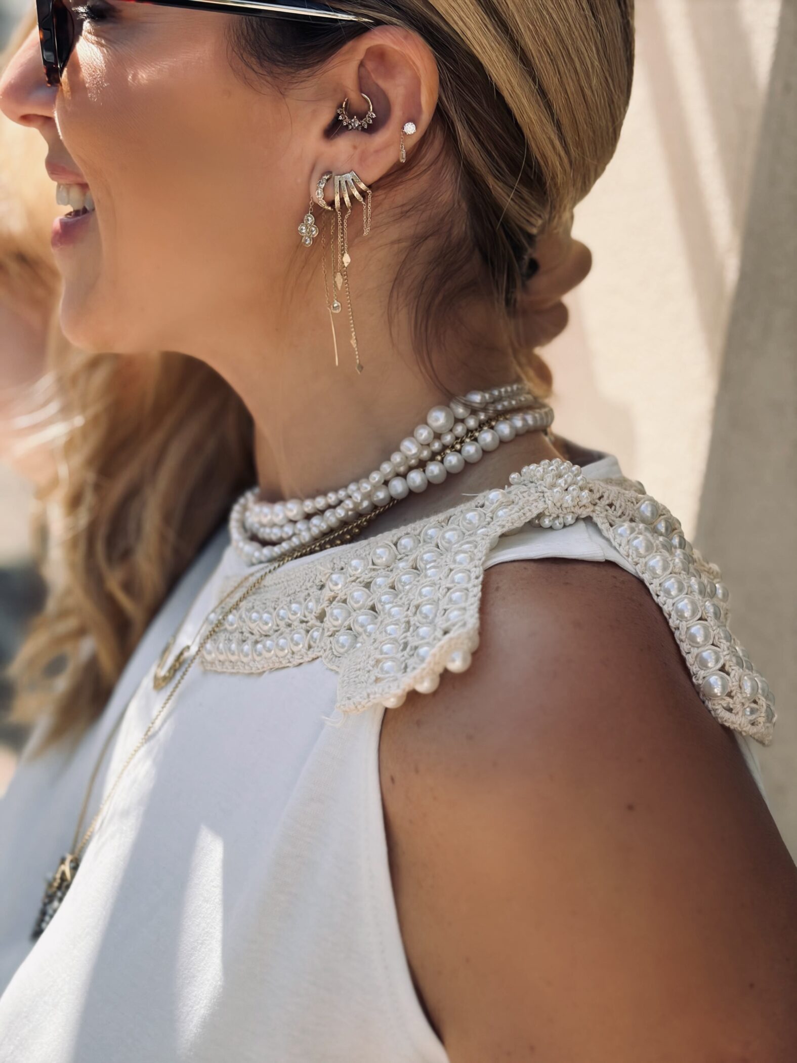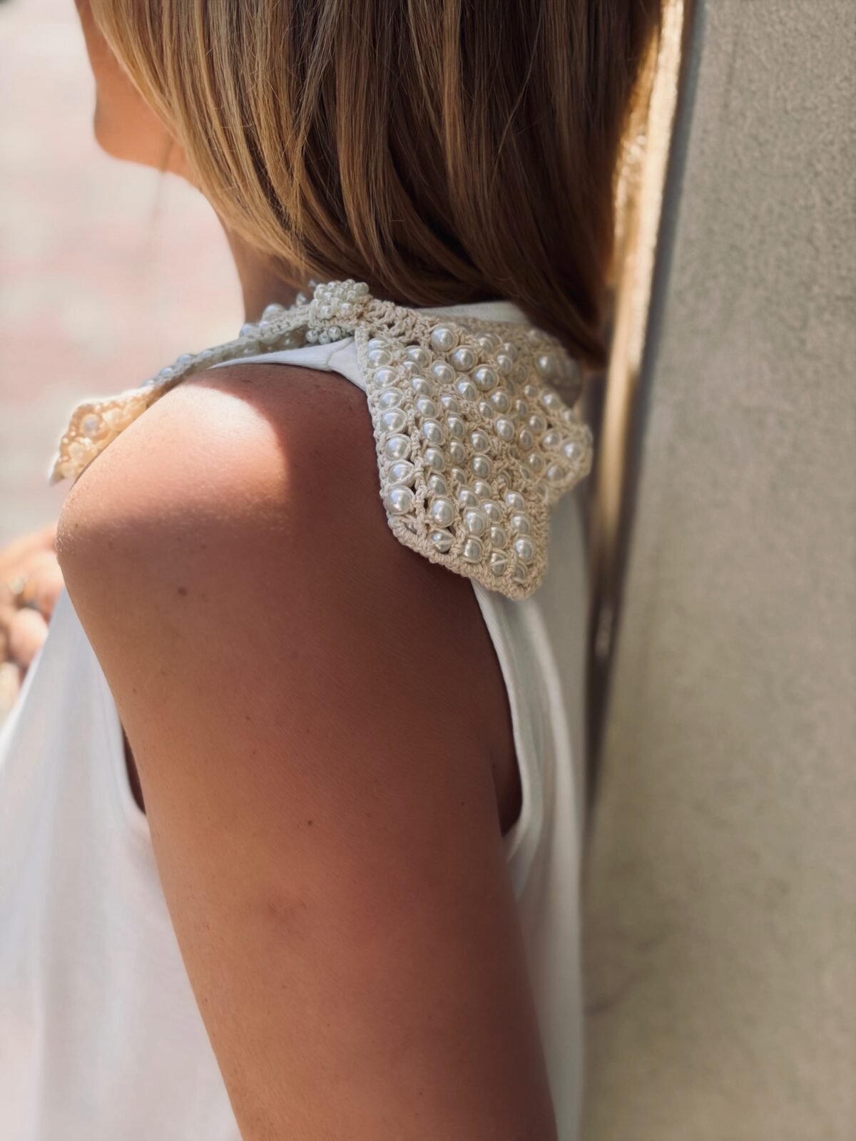 טופ אייקוני מבד כותנה בשילוב של פופיון קרושה עם פנינים.