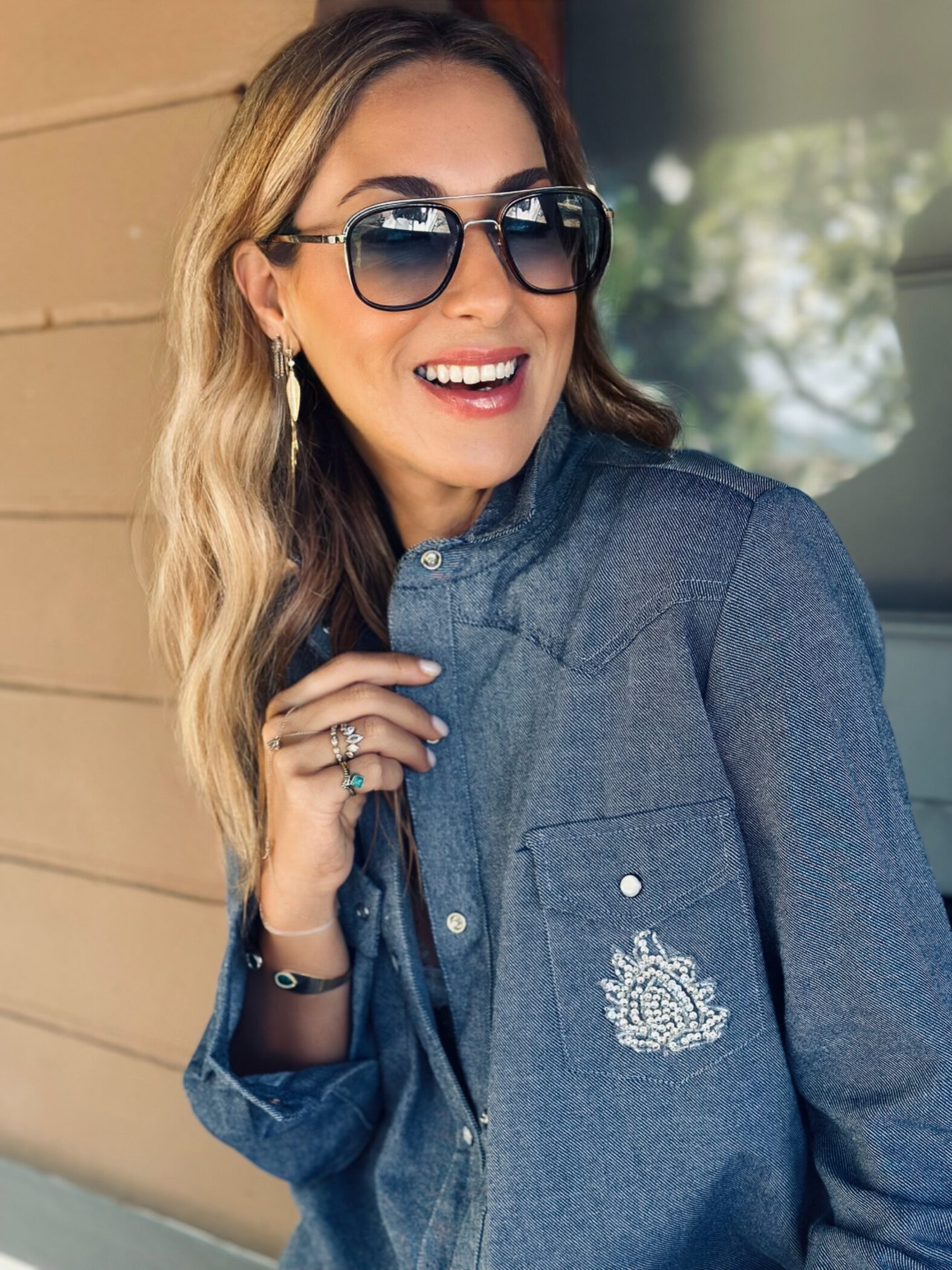 חולצת ג׳ינס מהממת עם דיטיילס אבנים בכיס